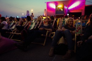 Een zwoele donderdagavond, ideaal om bij het Stenen Hoofd op loopafstand van het Centraal Station een avondje gratis films te kijken. Een vriendin en ik komen na negenen aan. Het terrein is al bomvol …